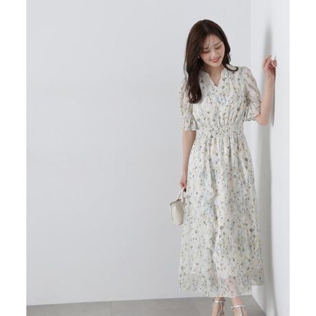 PROPORTIONオリジナルの花柄プリントで仕上げた映えワンピース。ウエストはぐるりシャーリングゴム仕様なので、着脱も着心地も抜群です。ふんだんに入れたラッフルは今季トレンドのディテールです。揺れ感が女性らしく、1枚でシーズンスタイルが完成します。