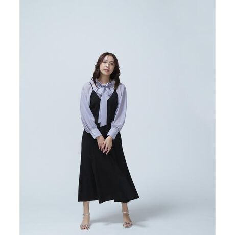 襟がすっきりとしたVネックデザインのキャミワンピース。ウエストはすっきりとしたボディ感で、裾にはふんだんにマチを入れているので、動くたびにふわっと揺れるシルエットを演出。バックスタイルもVネックで抜け感を出しながら、肩紐を二重に繋げたデザインで、華奢見え効果も期待できます。コンパクトなニットやボウタイブラウスなど、合わせるインナーを選ばずに着ていただけます。便利なスラッシュポケット付き。<素材>さらりとしたタッチでシワになりにくい合繊素材を使用。軽やかな着心地です。裏地がなくても透け感を気にしないで着られる素材です。<詳細>仕様・後ろファスナー裏地・なし透け感・なし / 光沢・なし / 伸縮性・ややあり 生地の厚さ・普通※モデルの着用画像の場合、光の当たり具合により、実際の色味と異なって見えることがございます。色味は、商品単体の画像をご参照ください。
