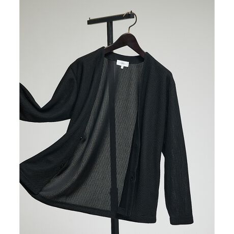 開ければ着流しカーディガンの雰囲気で着用できるため、Tシャツの上にサラリと織っても◎