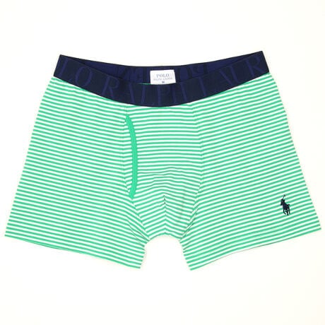 オーガニックコットンを使用したコットンストレッチボクサーブリーフです。柔らかな質感と伸縮性を兼ね備えた快適な着心地が特長。春夏シーズンらしいホワイトをベースにしたストライプ柄。トーナルカラーのウエストゴムや、左裾に入れたブランドアイコンのポロプレイヤー刺繍もポイントです。前開き仕様。