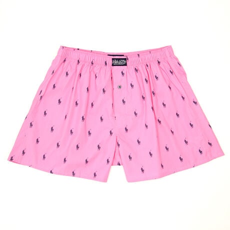 オーガニックコットン100%の平織生地を使用したトランクスです。表面のなめらかさと光沢のある素材感が特長。フロントセンターに縫い付けたラベルがポイントで、ブランドロゴを刻印したボタンもさり気ないこだわりです。ブランドアイコンのポロプレイヤーをオールオーバープリントした、ギフトにも最適なアイテムです。前開き仕様。