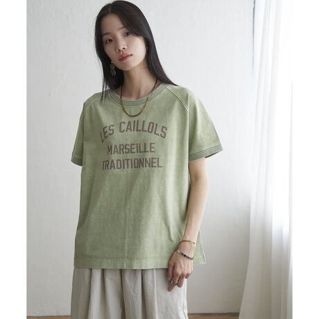 製品染めならではの風合いと、ほどよく抜け感のあるラグランデザインが魅力のロゴTシャツ。