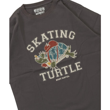 カメがスケートボードに乗りこなして遊んでいます。