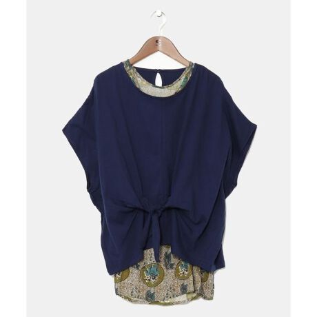 [型番:IAC-5111-2025]総柄タンクトップ型インナーと、前結びデザインの変形トップスのセットアイテム。これひとつでレイヤードコーデが楽しめる嬉しい一品。アフリカのキテンゲをモチーフにしたインナーは、一枚でも活躍する優れもの。トップスとインナーのセット商品