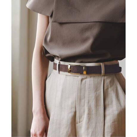 端正なゴールドのスクエアバックルが美しいメンズライクなベルト。