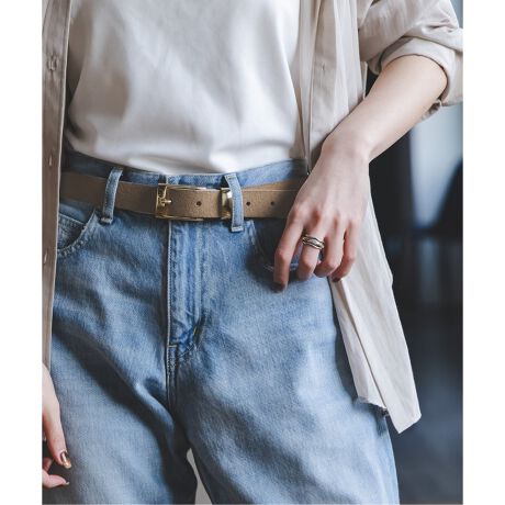 端正なゴールドのスクエアバックルが美しいメンズライクなベルト。