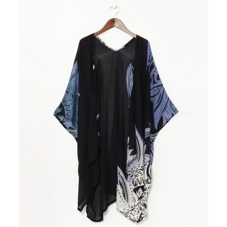 [型番:IACP5103-2025]UVカット加工のパレオストール。ポリネシアントライバル柄が涼しげなデザイン。カーディガン、パレオ、ストールとして使える3WAYの有能アイテム。お揃いのポーチは、持ち運びにも便利。UVカット加工
