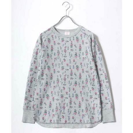 花柄総柄ワッフル長袖Tシャツ/ロンT レディース