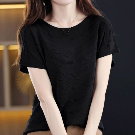 程よく女性らしさを感じさせるクルーネックサマーニット