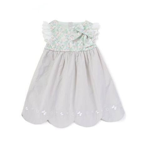 【絵本コラボ-みつごようせいのおしゃれなドレスやさん-】裾スカラップキラキラ蝶々お花プリントリボン付