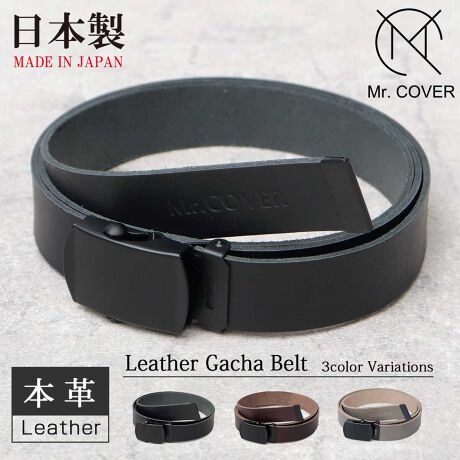 カジュアルでチープなイメージのガチャベルトを素材使いで落ち着いた雰囲気に。ありそうでなかった大人仕様のレザーガチャベルト。