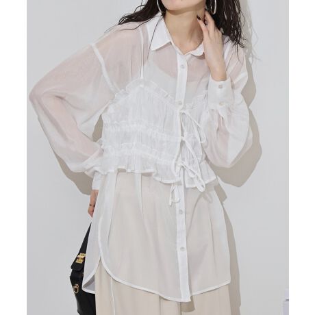 また、ビスチェをインナーとして着用し、シャツを羽織ることで、エレガントなカジュアルスタイルも簡単に楽しむことができます◎