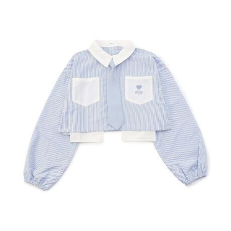 韓国っぽデザインのネクタイ付きクロップドシャツは