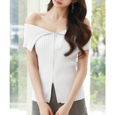 ダブルジップでコーデを楽しめるオフショルダーニット。