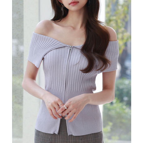 ダブルジップでコーデを楽しめるオフショルダーニット。
