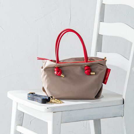 シンプルなデザインのボディにノットハンドルがアクセントになったトートバッグのXSサイズ。