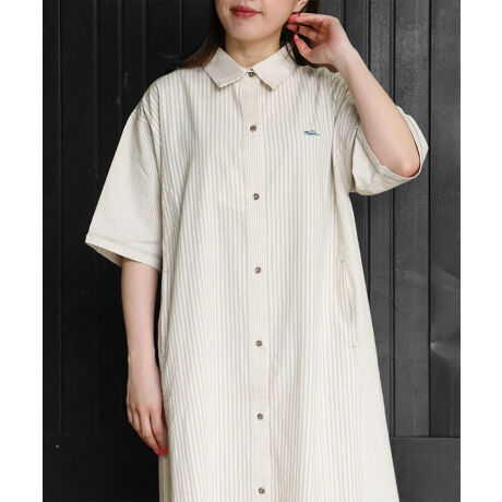 ピッチの違うストライプ生地を使用したシャツワンピです。