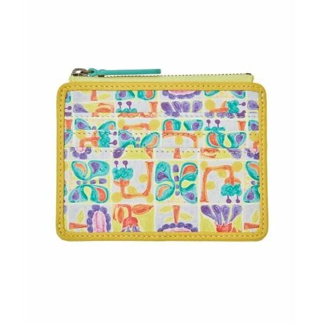 なめらかなゴートレザーにすももパープルをイメージしたカラフルな柄が印象的なカードケース。外側にはカードポケットを設け、スマートな決済にもしっかり対応してくれます。コインケースとしても使えるファスナー収納付きの実用的なデザイン。裏面には風合い豊かなカウレザーで配色アクセントを効かせたホコモモラらしいひと品です。