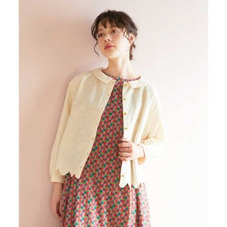美しい総刺繍がポイントのブラウス。体のラインを拾いにくいボックスシルエットでリラクシーな着心地を実現します。小ぶりなフラットカラーでフェミニンで上品な印象に。ドロップショルダーでこなれた雰囲気を後押しします。裾にあしらったスカラップ刺繍がデザインのポイントで裾にも華やかさをプラス。袖口にはタックを施し、細部にまでこだわりました。フロントボタンで着脱できる仕様です。