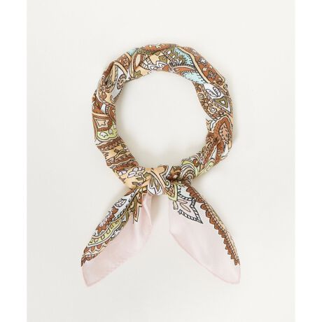 大きなペイズリー柄が目を引く華やかなプリントスカーフ。