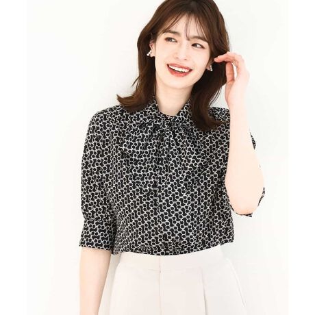 ビットプリント ボウタイ付きブラウス/洗える/WEB限定サイズあり