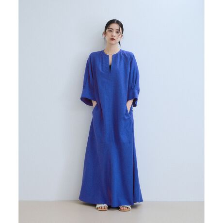 女性らしい魅力的なシルエットにこだわった、スタイルアップ効果のあるロングワンピース。フロントのキーネック開きが、顔まわりの抜け感をプラスしてくれるのもポイント。計算されたボリューム袖、適度にゆとりがありながらもシェイプしたウエスト、優雅に広がるフレアシルエットのバランスに、とことんこだわった一着。