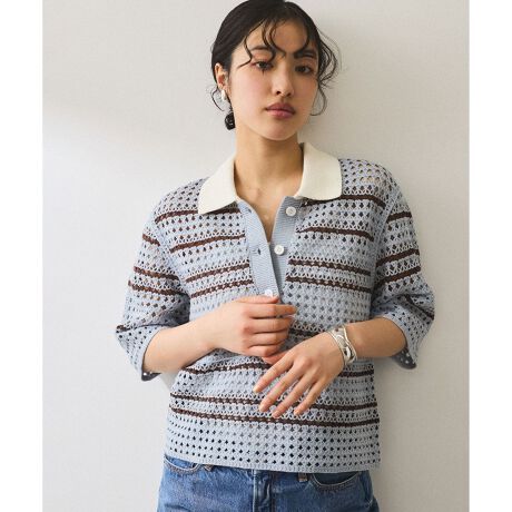 コンパクトなサイズのニットポロは旬な着こなしができる1着。