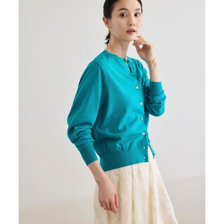 色々なシーンで活躍する、ワンランク上の大人ベーシックカーディガン。コンパクトながらも見頃や袖にややゆとりを持たせたつくりで、パンツにもスカートにも合わせやすい着丈となっています。ロゴを刻印したオリジナル金釦と見頃に施したアナグラム刺繍がアクセントになっています。