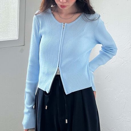 Wzipコンパクトリブニット