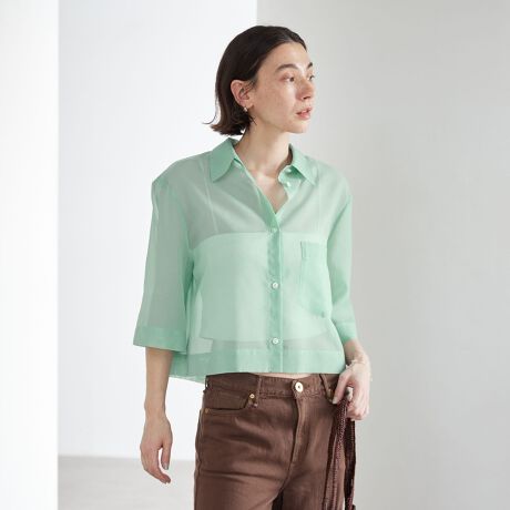 透け感&ショート丈で旬を楽しむ、大人カジュアルなシアーシャツ。