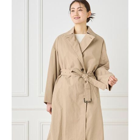 トレンチらしいベーシックさを基調としながら、程よいサイジングとシンプルなディテールで洗練されたモダンなイメージに仕上げたました。ドライで軽いナイロンのタッサーを使用した軽やかな着心地もポイント。ベルトでお好きなフィット感で着ていただく事もできます。品が良く知的な印象がありながら肩肘張らずに着ていただけるトレンチコート。撥水加工も嬉しいポイントです。・ポケットあり・裏地あり(背ヌキ)■サンプル撮影商品■こちらの商品はサンプルでの撮影となっております。実際の商品とは、サイズや色味、素材、デザイン等の仕様が若干変更になる場合がございます。