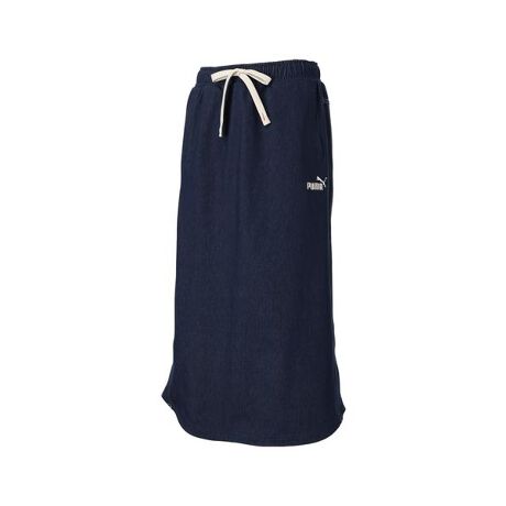 ONELINEコレクションから登場する、コットンポリエステル素材を使用したデニムライクニットのスカート。裾のカーブラインとサイドスリットがアクセントになったデザイン。デニムのように見えながらもニット素材なのでストレッチ性抜群。デニムに使われるような太番手の糸を使った二本針のステッチワークや、バックポケットに施したフォームストリップの刺繍がアクセント。スポーティ且つカジュアルな着こなしをお楽しみ頂ける春夏シーズン重宝するアイテムです。