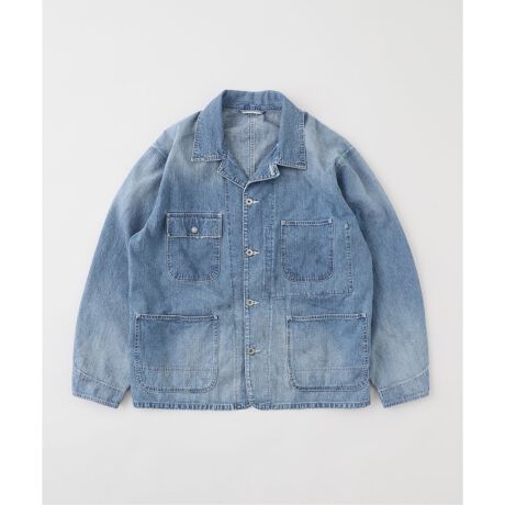 自然な色落ちとネップ感が特徴の高密度の国産11ozセルビッチデニムを使用。定番的なポケット仕様と配置でクセのないカバーオール型ジャケットの為、加工がより際立ちます。