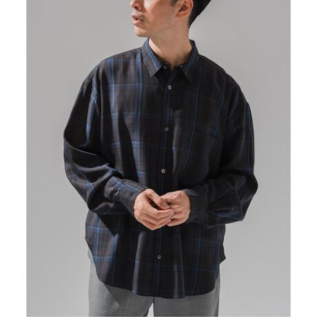 E. ウォッシャブル キュプラ シアー チェックシャツ