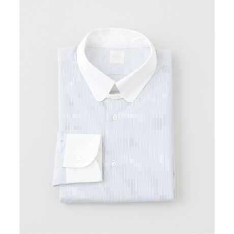 D. ショートラウンドタブ クレリックシャツ ストライプ