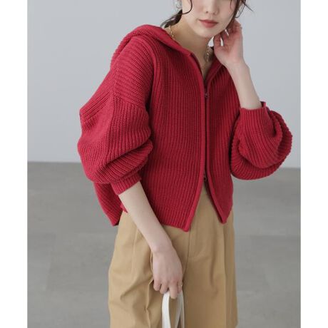 コットンタッチのニットジップフーディ。片畦編みで編地がしっかり立つカジュアルな仕上がりです。身頃部分にアウトリンキングを施して立体感のあるデザインに。大きめのフードは存在感があり、1枚でも様になるアイテムです。ジャストな丈感に加えて身幅は広めなので、ゆったりと着こなせます。トレンチコートのインとしても、アウター代わりに羽織るのもオススメ。ワイドシルエットのパンツと相性抜群でスタイルアップが叶います。※モデルの着用画像の場合、光の当たり具合により、実際の色味と異なって見えることがございます。色味は、商品単体の画像をご参照ください。