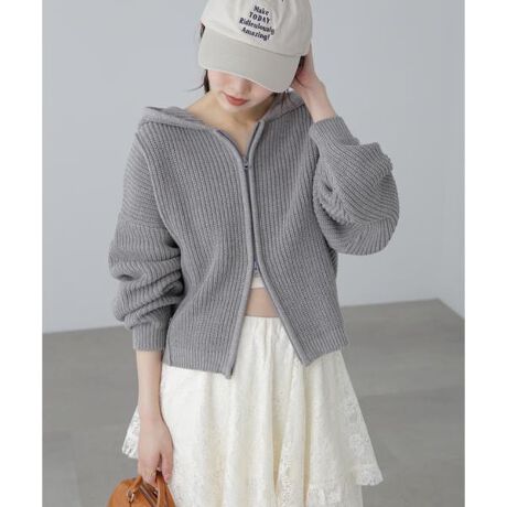 コットンタッチのニットジップフーディ。片畦編みで編地がしっかり立つカジュアルな仕上がりです。身頃部分にアウトリンキングを施して立体感のあるデザインに。大きめのフードは存在感があり、1枚でも様になるアイテムです。ジャストな丈感に加えて身幅は広めなので、ゆったりと着こなせます。トレンチコートのインとしても、アウター代わりに羽織るのもオススメ。ワイドシルエットのパンツと相性抜群でスタイルアップが叶います。※モデルの着用画像の場合、光の当たり具合により、実際の色味と異なって見えることがございます。色味は、商品単体の画像をご参照ください。