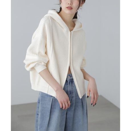 コットンタッチのニットジップフーディ。片畦編みで編地がしっかり立つカジュアルな仕上がりです。身頃部分にアウトリンキングを施して立体感のあるデザインに。大きめのフードは存在感があり、1枚でも様になるアイテムです。ジャストな丈感に加えて身幅は広めなので、ゆったりと着こなせます。トレンチコートのインとしても、アウター代わりに羽織るのもオススメ。ワイドシルエットのパンツと相性抜群でスタイルアップが叶います。※モデルの着用画像の場合、光の当たり具合により、実際の色味と異なって見えることがございます。色味は、商品単体の画像をご参照ください。
