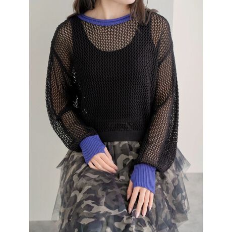 ・ざっくりとした透かし編みニットが大人の抜け感をプラス。