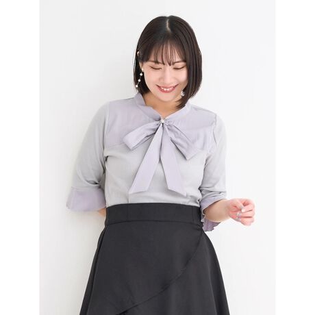 【WEB限定】5分袖布帛切り替えボウタイブラウス