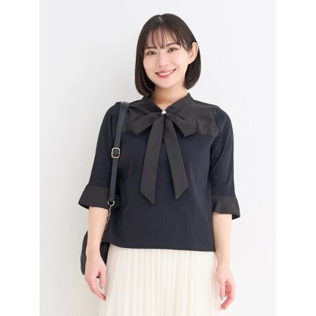 【WEB限定】5分袖布帛切り替えボウタイブラウス
