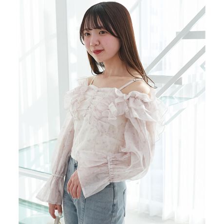 ボリューム感のあるフリルが華やかな印象を与えるフェミニンブラウス。