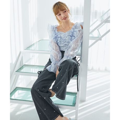 ボリューム感のあるフリルが華やかな印象を与えるフェミニンブラウス。