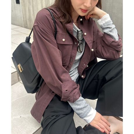 1枚でもレイヤードにも使いやすく、シーズンレスで活躍するアイテムです。パールボタンは大粒サイズを使用しミックス感を引き立てました。カジュアルさはもちろん、女性らしさもプラスしたおすすめカラー展開です。