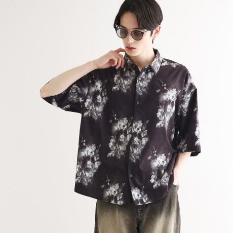 一枚でサマになるプリントは、シャドーフラワープリントのモノトーンデザイン。