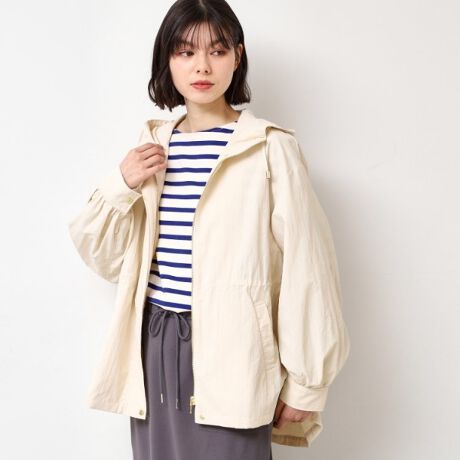 ウエストのドロストでシルエットを変えたり、袖のカフスをまくり上げることでカジュアルダウンし今っぽく着こなせます。