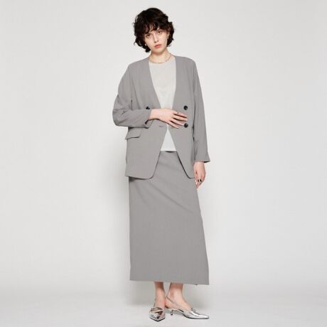・同素材のジャケット・ジレとセットアップ着用もおすすめ。