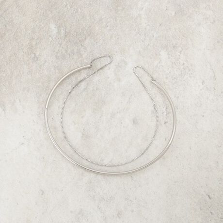 華奢なチェーンとシンプルなメタルの2連ネックカフ