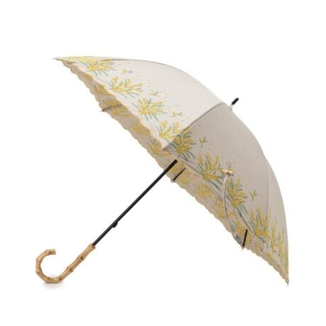 【日傘晴雨兼用】【because】ミモザ刺繍ロングアンブレラ