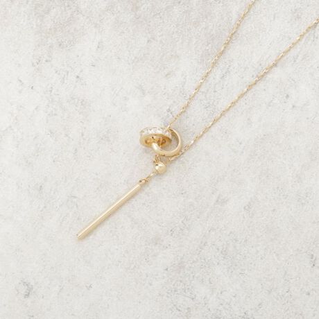 メタルとビジューのダブルリングが華やかなスライドネックレス